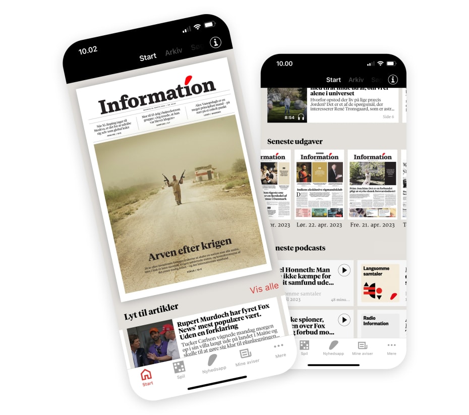 Læs og lyt til vigtige og udvalgte historier I Information app. Her får du hurtigt og nemt et overblik over vores artikler, og vi sender kun notifikationer ud på tidspunkter, som passer dig.
